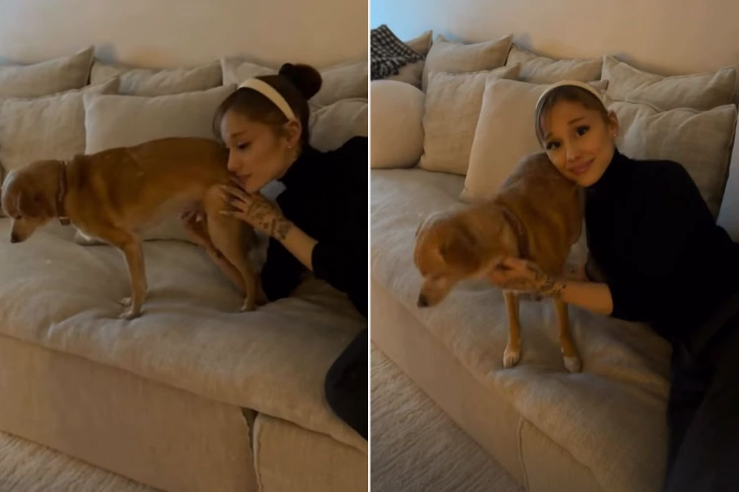 Slater, 33, shared pictures of Grande, 32, cuddling with a canine and celebrating in a collection of Instagram Story posts on Friday, Dec. 26. Within the pictures, Grande wears an all-black outfit that includes a turtleneck, wide-leg pants and platform heels. She accomplished the look with a white headband and pearl earrings to decorate her glossy updo.